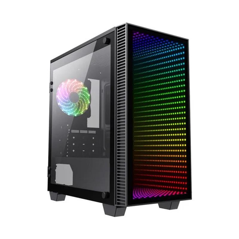 A pesar de su tamaño reducido, el Gabinete Gamemax Mini Abyss H608 ofrece un interior espacioso para la instalación de tarjetas gráficas de hasta 320 mm, múltiples unidades de almacenamiento y sistemas de refrigeración avanzados. Su panel lateral de vidrio templado permite exhibir los componentes internos con un acabado limpio y profesional.