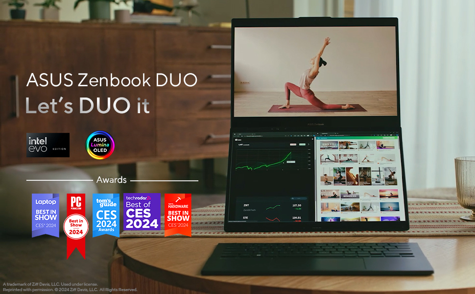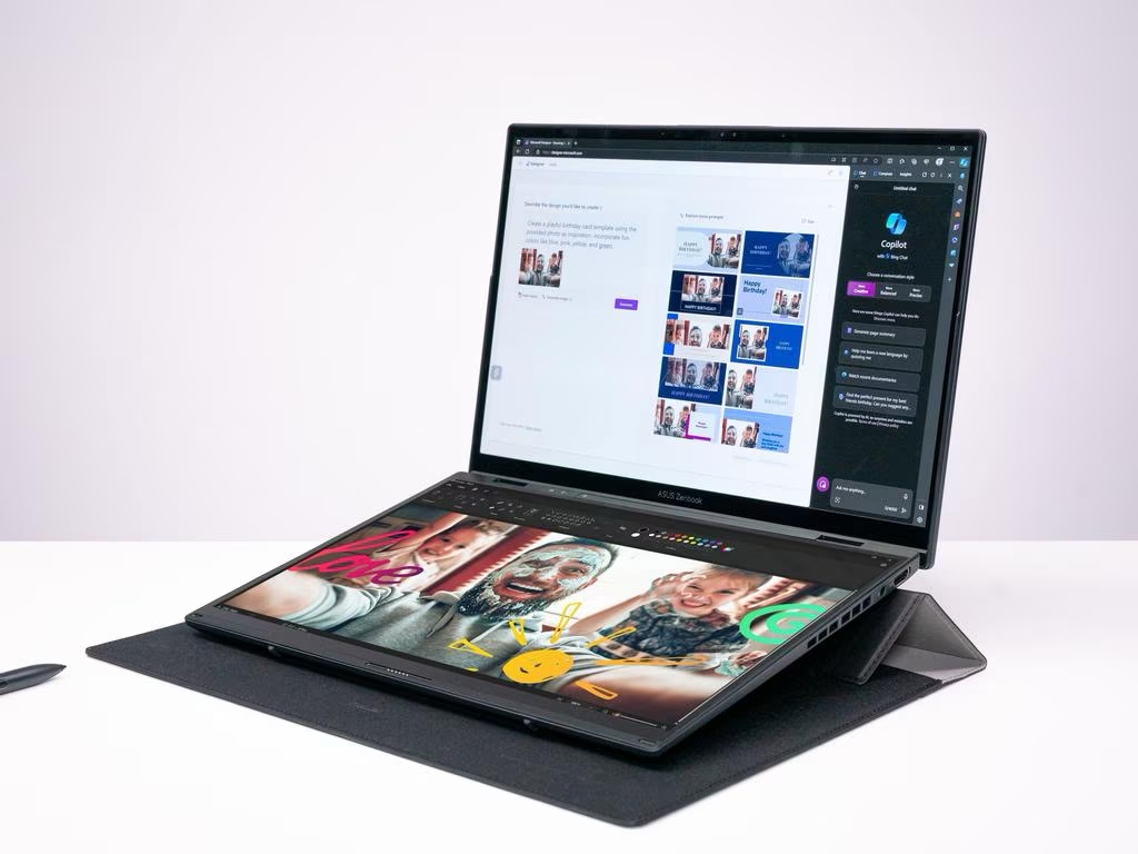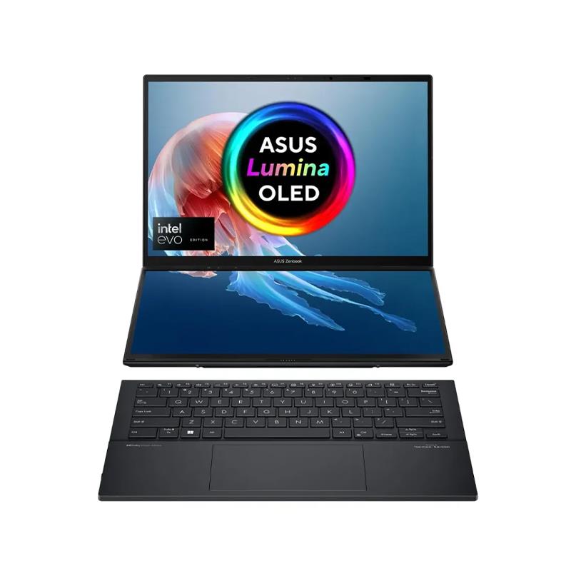 La Asus Zenbook Duo Ultra redefine la experiencia de productividad con su diseño distintivo y su pantalla táctil OLED 3K de 14.5″, que ofrece colores extremadamente precisos, contraste profundo y una claridad que potencia el trabajo visual en cada tarea. Este modelo incorpora una segunda pantalla integrada ScreenPad Plus que amplía el espacio de trabajo de forma inteligente, permitiendo organizar herramientas, líneas de tiempo, paneles de control o previsualizaciones sin saturar la pantalla principal. Su chasis elegante y acabado premium transmite calidad, mientras que la comodidad de uso se siente tanto en entornos profesionales como creativos. El teclado y trackpad están pensados para brindar precisión y ergonomía en largas jornadas, y al llegar con Windows 11, la Zenbook Duo Ultra está lista para usarse con compatibilidad y seguridad desde el primer encendido.