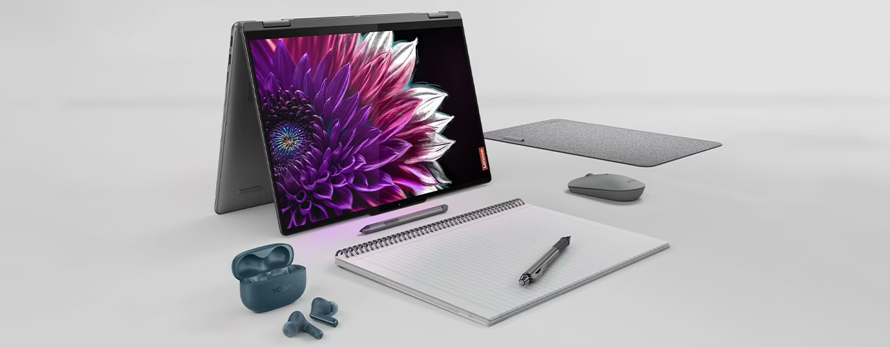 El corazón de este Yoga es el procesador AMD Ryzen AI 7 350, que combina rendimiento de CPU con capacidades de aceleración por IA para optimizar tareas como edición de imágenes, organización de archivos y productividad general. Los 16 GB de RAM LPDDR5X aportan fluidez en multitarea incluso con múltiples aplicaciones abiertas, mientras que el SSD NVMe de 1 TB asegura arranques rápidos del sistema, cargas inmediatas de programas y espacio más que suficiente para documentos, proyectos, videos y bibliotecas multimedia. La gráfica integrada Radeon permite ejecutar con soltura flujos de video 1080p, edición ligera en apps como Canva, Adobe Photoshop Express, Lightroom o Clip Studio Paint, y navegación fluida incluso con pestañas intensivas abiertas. Este convertible también es ideal para videollamadas, clases online y reuniones virtuales, gracias a su cámara FHD con obturador de privacidad y sonido Dolby Atmos optimizado
